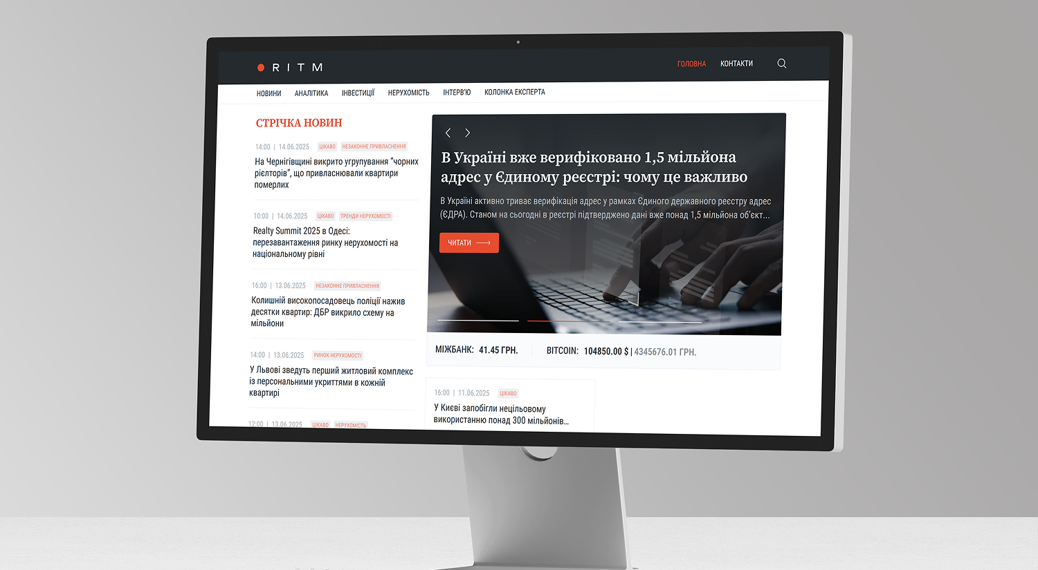 Зробили сайт для Ritm Media — новини легко читати, інтерфейс простий і зрозумілий. Користувачі швидко знаходять потрібне, а редакція зручно додає матеріали через зручну адмінку. Сайт виглядає сучасно й добре працює на різних пристроях.